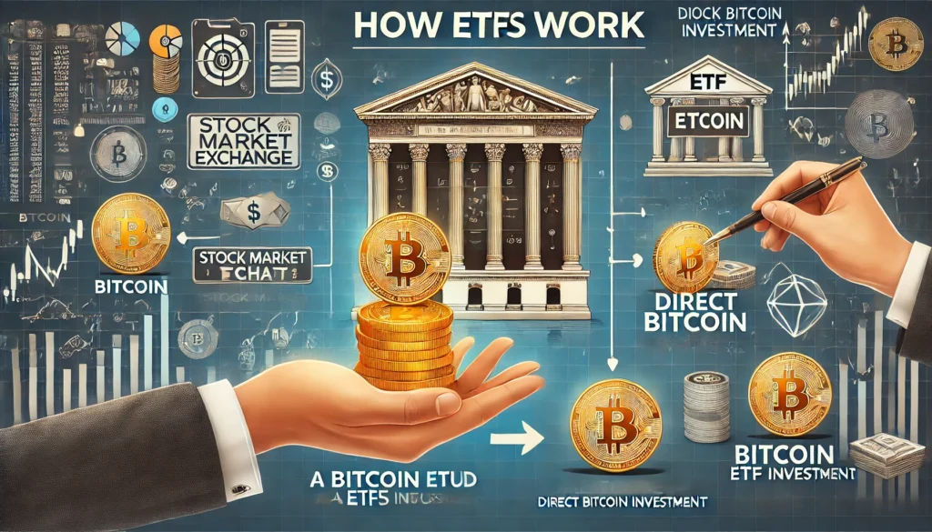 비트코인 ETF는 비트코인의 가격을 추종하는 투자 상품으로, 투자자들이 직접 비트코인을 구매하지 않고도 거래소에서 쉽게 매매할 수 있도록 설계된 것입니다. 기존에는 암호화폐 거래소에서 직접 구매하고 개인 지갑에 보관해야 했지만, 이제는 주식처럼 편리하게 투자할 수 있습니다.